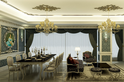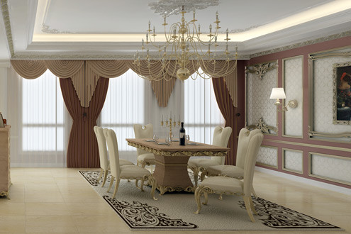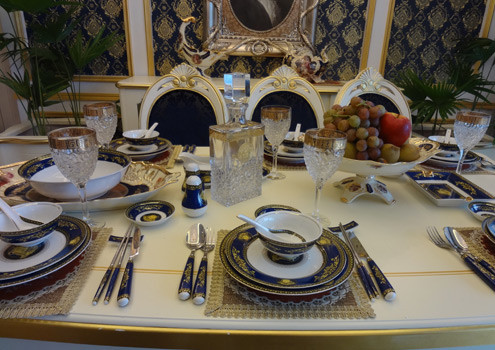 Mỗi căn hộ, bàn ăn được trang bị đồ gốm sứ tinh xảo, cầu kỳ, góp phần tô điểm thêm vẻ cổ điển cho căn phòng.