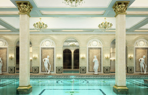 Bể bơi bên trong tòa nhà.