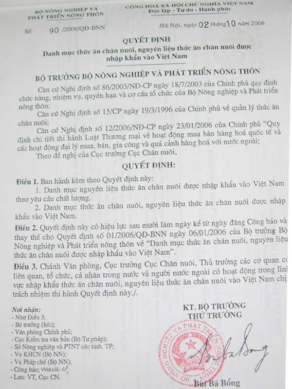| Ngày 12-4, Bộ NN&PTNT cho biết Gold Protein Peptide (SSI) là “sản phẩm đăng ký và được đưa vào danh mục được phép nhập khẩu để làm nguyên liệu cho thức ăn chăn nuôi (TACN), không chứa chất cấm sử dụng”. Bộ NN&PTNT cho hay, theo hồ sơ đăng ký nhập khẩu nguyên liệu TACN SSI, do Công ty TNHH Sản xuất Thương mại Chăn nuôi Nam Hoa (Quận Tân Phú, TP HCM) đăng ký ngày 20-6-2005 tại Cục Chăn nuôi, SSI là sản phẩm protein của hạt đậu tương đã được thủy phân thành các peptid mạch ngắn giúp vật nuôi dễ tiêu hóa, ngoài ra không chứa chất hoá học nào khác. Bộ bổ sung mặt hàng này vào “Danh mục TACN, nguyên liệu TACN được nhập khẩu vào Việt Nam” trong đó có SSI. Theo ông Lê Bá Lịch, Chủ tịch Hiệp hội Thức ăn chăn nuôi, SSI không phải là chất mới, lạ, chất cấm mà có trong Danh mục thức ăn chăn nuôi, nguyên liệu thức ăn chăn nuôi được phép nhập khẩu vào VN được Bộ NN&PTNT ban hành ngày 2-10-2006 (ảnh nhỏ). Nhưng khi cho phép nhập khẩu, các cơ quan quản lý lại bỏ ngỏ khâu hậu kiểm nên DN trộn chất cấm vào. Phạm Anh - Hà Nhân |