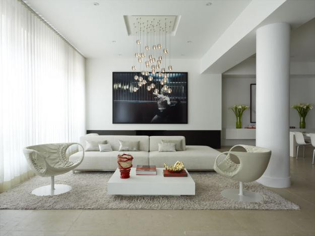Sau đây là những gợi ý, thiết kế không gian nội thất hiện đại với tông trắng chủ đạo. Hầu hết các phòng khách của chúng tôi đều dùng gam màu trắng, hiệu quả mang lại là một căn phòng hiện đại, bừng sáng và như rộng lớn hơn. Để kết hợp với không gian trắng là những đồ nội thất là điểm nhấn phải thật tinh tế, đơn giản: bộ sofa, chiếc kệ, lọ hoa... và còn hơn thế nữa để tạo cho phòng khách của bạn nét hiện đại, sang trọng và vẻ đẹp lung linh.