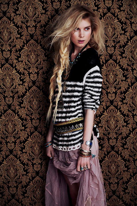 Free People đem đến cho chúng ta không chỉ có những bộ trang phục mang phong cách du mục, mà còn những mẫu thiết kế lạ mắt, khác xa với hình ảnh đáng yêu dễ thương mà ta thường thấy. Free People là sự kết hợp đầy phóng khoáng giữa những phục trang mang màu sắc bohemian.