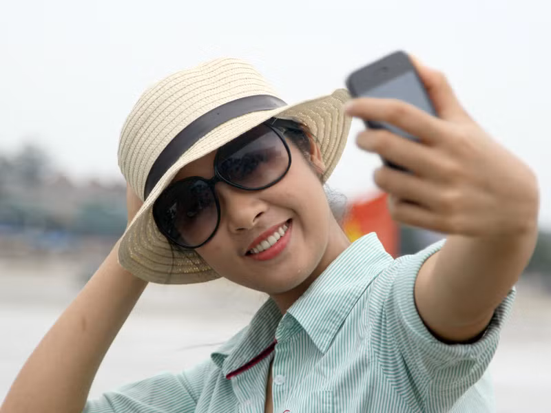 | "Tự sướng"trước cảnh đẹp thiên nhiên. |