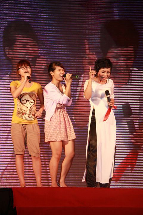 | Thái Thùy Linh đồng ca với các bạn sinh viên tại đêm Gala. Ảnh: Trường Phong. |