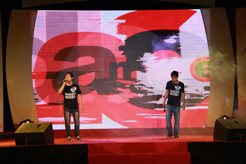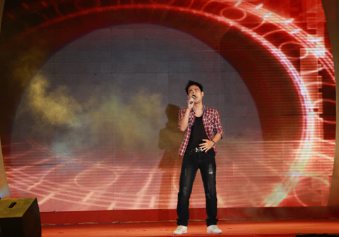 | Ca sĩ Hoàng Hải hát bốn bài, khiến nhiều bạn sinh viên phát cuồng. Ảnh: Trường Phong. |