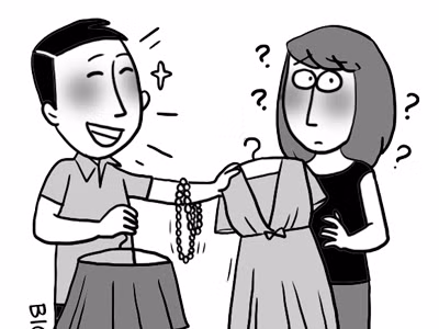 Kể ra anh ấy như thế cũng hơi khác thường so với đa số đàn ông; nhưng nói như em thì những nhà thiết kế, họa sĩ và những ai có mắt thẩm mỹ một chút đều có tội hay sao? Anh ấy có yêu thương em thật lòng hay không cần căn cứ vào những lúc khó khăn, thất bại xem có giúp đỡ, chia sẻ hay không, chứ căn cứ vào lúc đi mua váy e rằng chưa chuẩn lắm. Hazzzzzz…