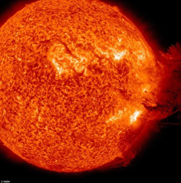 Theo các nhà thiên văn học, phóng xạ phun ra như những ngọn lửa, liên tiếp và rực rỡ. Các đám mây hạt năng lượng mọc lên dày đặc trên bề mặt Mặt trời.