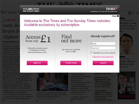 Tờ Times của Anh đã đánh mất hơn 90 % độc giả mạng, khi sau hai tuần thử nghiệm chế độ đăng kí, ngày 1/7/2010 họ công bố bãi bỏ truy cập miễn phí và bắt đầu thu lệ phí.