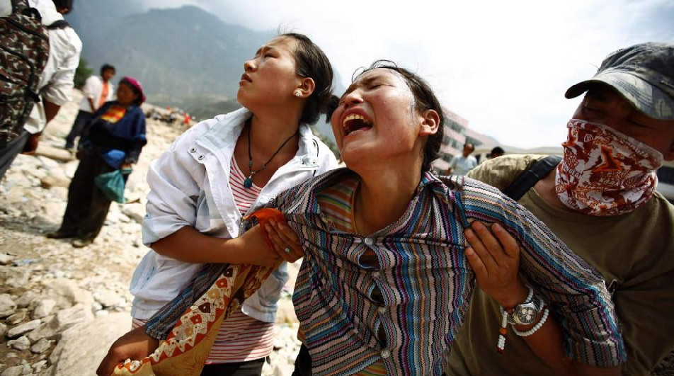 Một phụ nữ gào khóc thảm thiết khi người thân bị mất tích trong trận lỡ đất kinh hoàng ở tỉnh Cam Túc (Trung Quốc) hôm 10-8.