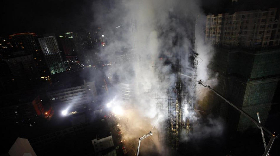 Lực lượng cứu hỏi Trung Quốc đang cố gắng dập tắt đám cháy tại tòa chung cư 28 tầng ở Thượng Hải ngày 15-11 làm 53 người thiệt mạng.