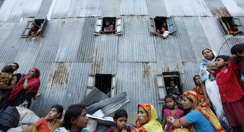 Những nạn nhân không có chỗ cư trú sau khi một tòa nhà 5 tầng đổ sụp ở khu vực Begunbari, Dhaka. Họ đang ngồi chờ đợi chỗ ở tạm cư ở vùng lân cận ngày 2-6.
