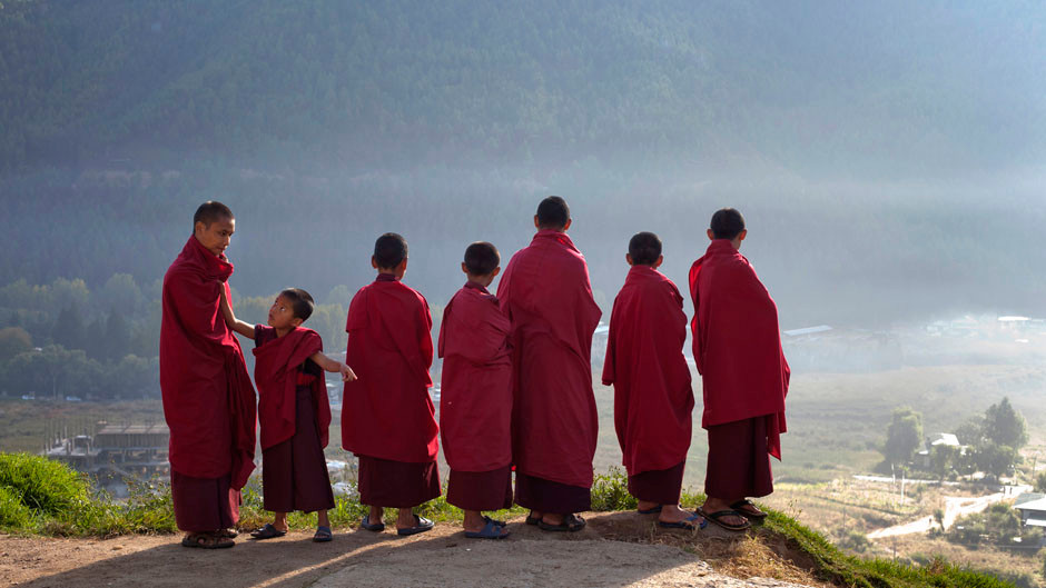 9. Các nhà sư thuộc dòng Phật giáo Dechen Phrodrang tại Bhutan đứng trên đỉnh đồi ở thủ đô Thimphu. Đất nước Bhutan tuần qua vừa mừng đám cưới của vị vua 31 tuổi với cô gái thường dân theo nghi thức Phật giáo.