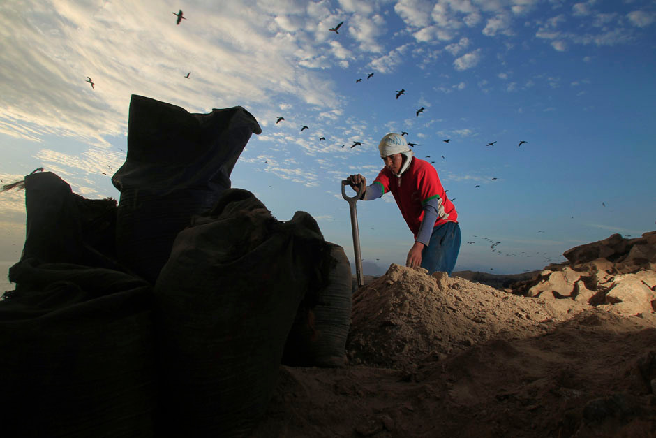 Hiện tại Peru đang thúc đẩy phát triển ngành nông nghiệp hữu cơ nhờ phân chim. Nam công nhân này đang gom lượng phân chim tại hòn đảo.