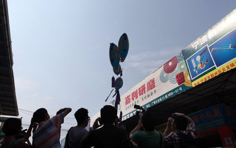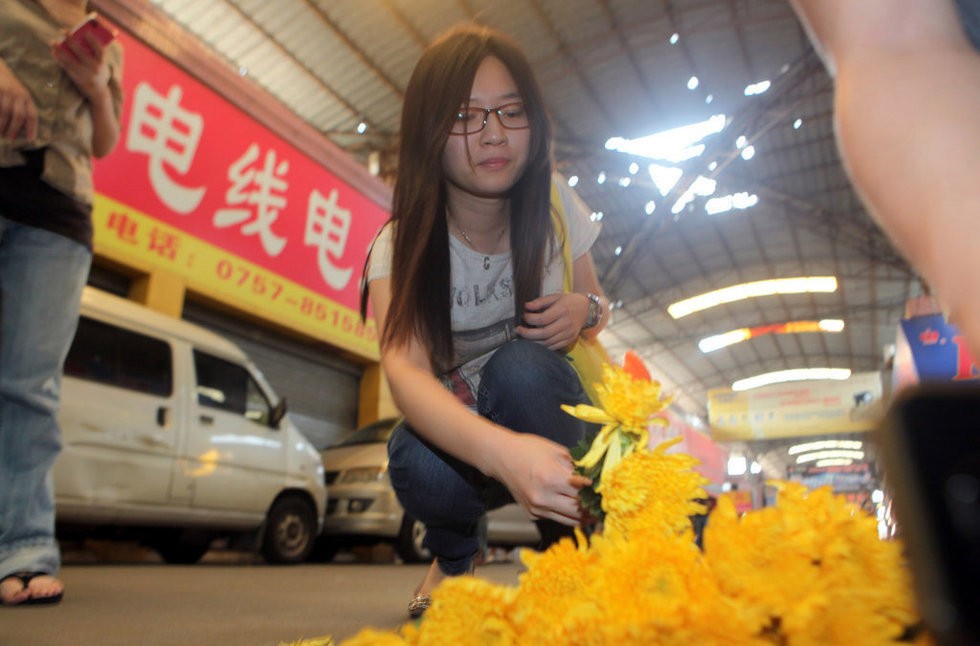 Người dân tại thành phố Phật Sơn đã đến hiện trường xảy ra tại nạn đặt hoa và thả bóng bay cầu nguyện cho em.