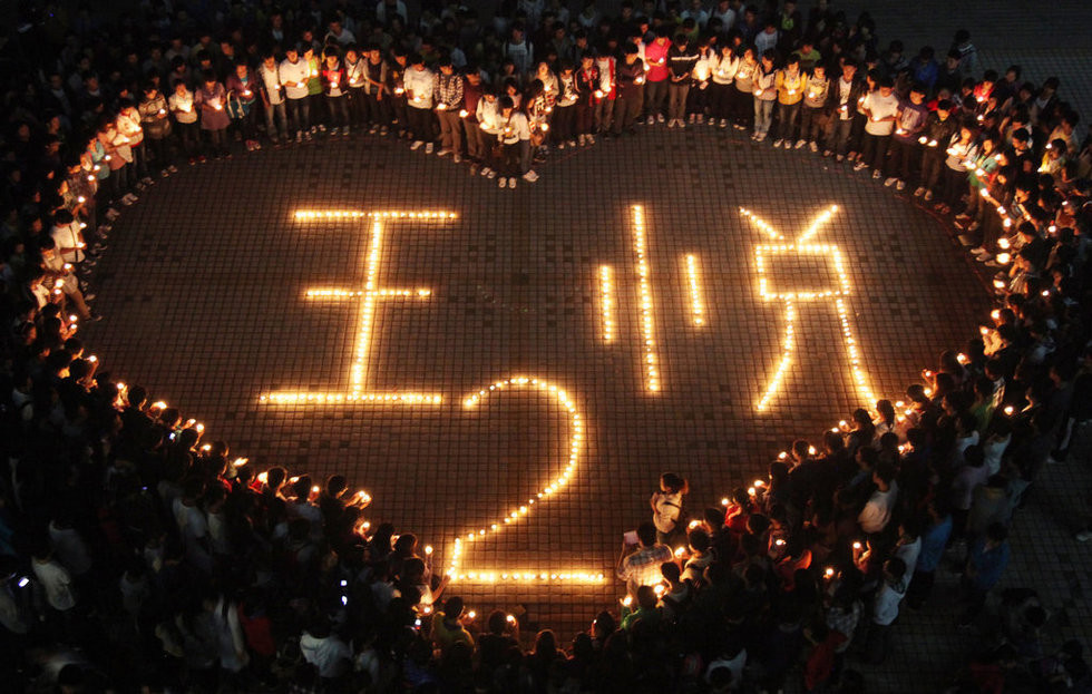 Sinh viên trường Đại học Nam Hoa, Hàng Dương, Hồ Nam, Trung Quốc đã cầm nến xếp thành hình trái tim, bên trong xếp nến thành chữ “Vương Duyệt” và “2” và cầu phúc cho Duyệt Duyệt.