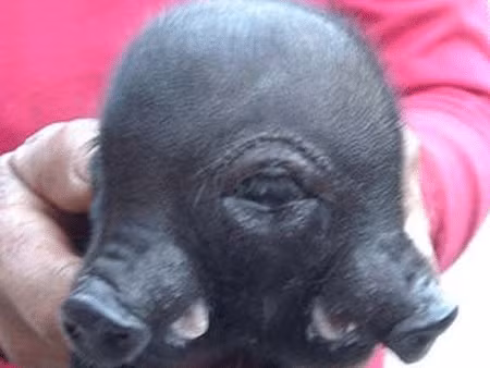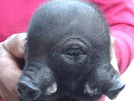 Chú lợn này có lông đen, hai mõm nhưng chỉ có một mắt ở giữa.