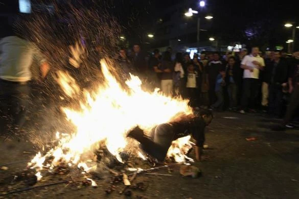 Một người đàn ông nhảy vào đống lửa trong một lễ hội cuối năm tại Quito, Ecuador. Ảnh: Reuters.