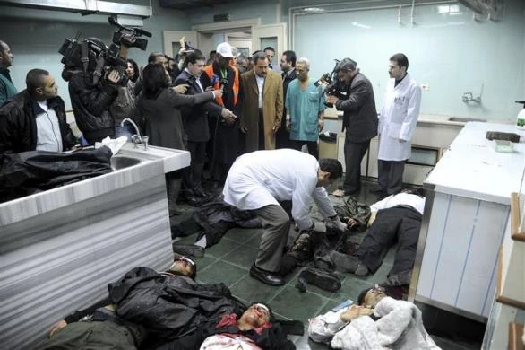 Thi thể các nạn nhân một vụ đánh bom liều chết xảy ra tại quận Maidan, thủ đô Damascus, Syria vào ngày 6-1. Trên ảnh, đài truyền hình quốc gia Syria đang thực hiện bản tin. Ảnh: Reuters.