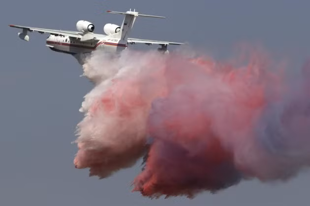 Máy bay cứu hỏa Be-2 biểu diễn trên không trung.