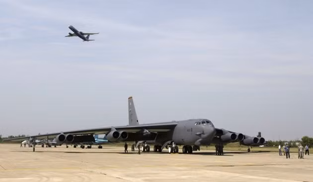 Một chiếc máy bay ném bom hạng năng B-52 của quân đội Mỹ xuất hiện tại triển lãm.