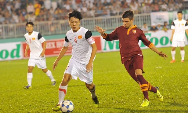 Phút thứ 7, Hoàng Thanh Tùng băng vào khiến thủ môn AS Roma phải lao ra cản phá. Bóng từ từ lăn vào lưới nhưng các hậu vệ đội khách đã phá bóng trong gang tấc. Một cơ hội bị bỏ lỡ đầy tiếc nuối của các cầu thủ Việt Nam. | ||
