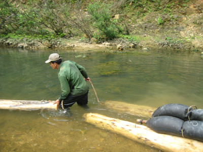 Theo một lâm tặc có tên là T, với kiểu vận chuyển này, yêu cầu thợ rừng phải chạy thật nhanh theo con nước. Khi xả nước, từng hàng gỗ trôi với một vận tốc khá lớn. Thợ rừng phải chạy đằng trước để điều khiển gỗ không bị mắc kẹt vào hai bên bờ hoặc dắt vào những hốc đá. Nếu chỉ chạy chậm hoặc bị vấp ngã, dễ bị gỗ quật vào người, chết như chơi. Không ít người gãy chân, sứt đầu, mẻ trán bởi cách vận chuyển gỗ mạo hiểm này.
