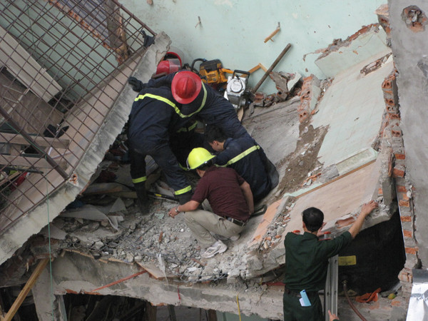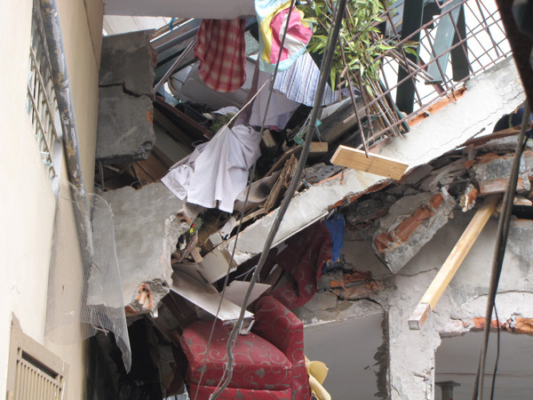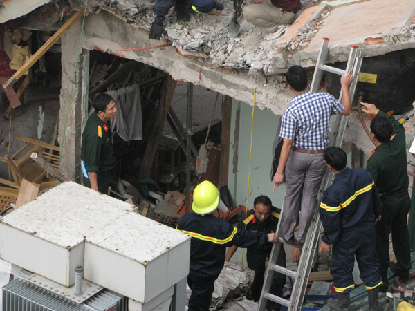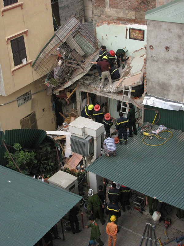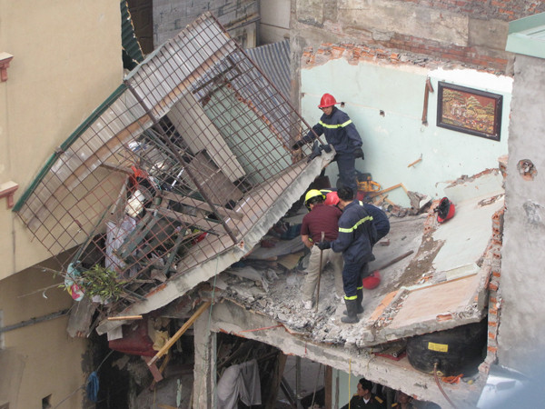 | Vụ nổ bình gas khiến ngôi nhà ba tầng bị sập hoàn toàn. Hai vợ chồng chủ nhà bị thương nặng, hai đứa bé bị vùi lấp, hiện chưa tìm thấy. |