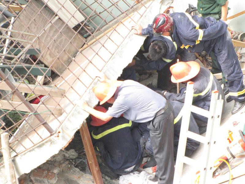 Trong khi đó, lực lượng cứu hộ, công an, cảnh sát, bộ đội và nhân viên y tế đã có mặt để tìm kiếm, cứu nạn hai cháu Trần Ngọc Tâm (đang học lớp 9, trường THCS Tô Hoàng, Hai Bà Trưng), và Trần Duy Anh học lớp 1. Tuy nhiên, hai cháu đã tử vong sau khi được đưa ra ngoài.