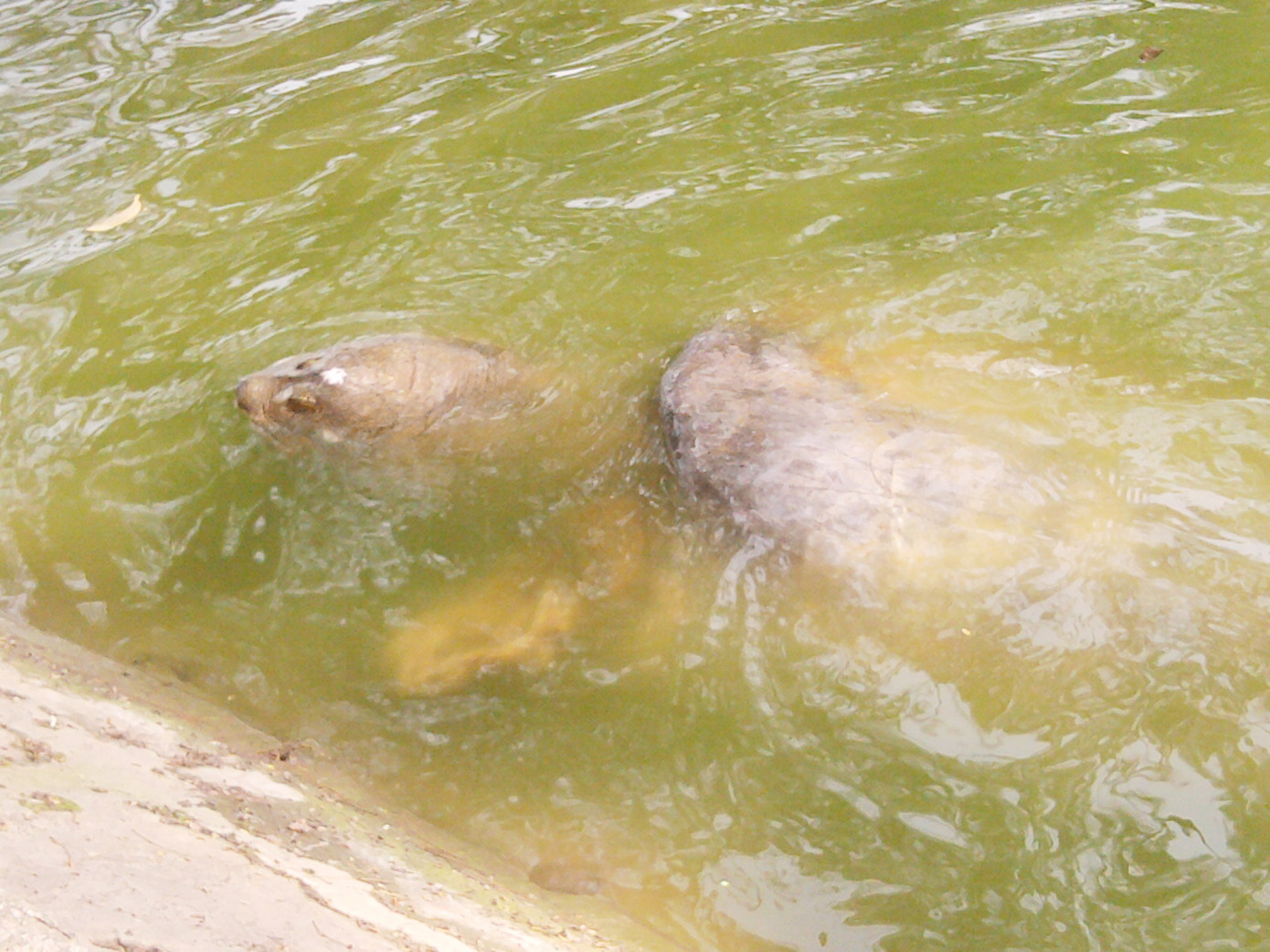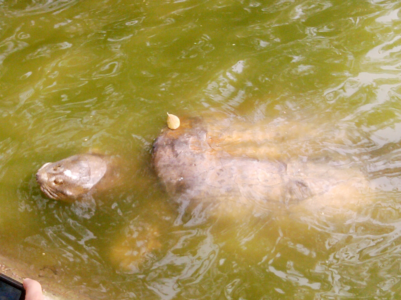 Cụ rùa nổi khoảng 30 phút, sau đó di chuyển ra phía tháp Rùa rồi lặn mất.