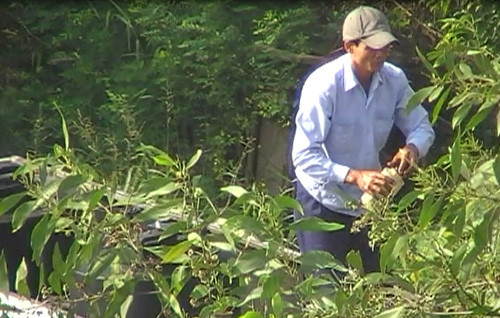 Sau nhiều ngày suy tính, chúng tôi quyết định tiếp cận trực tiếp. Để tránh nghi ngờ của đội ngũ cảnh giới, từ 5 giờ sáng, chúng tôi đóng vai thợ bẫy chim, tay xách lồng chim mồi, vai đeo túi đựng thang dây. Kiên nhẫn chờ đến lúc những người canh gác không để ý, chúng tôi lách ra phía sau, men theo bãi lau sậy dọc đầm lầy, tiếp cận bức tường cao gần 3 mét, dùng thang để vượt tường. Toàn bộ khuôn viên bên trong rộng vài trăm mét vuông, chất đầy thùng phuy, bồn chứa, can nhựa, máy bơm nước...