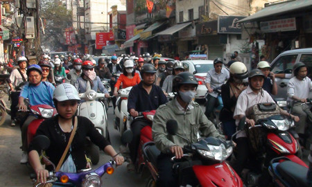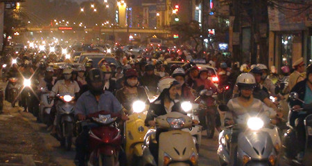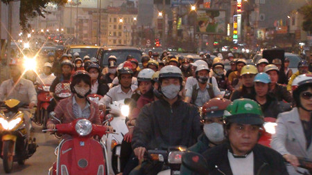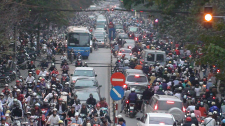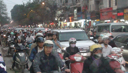 | Dòng người đông đúc trên đường Nguyễn Trãi lúc 17h45. |