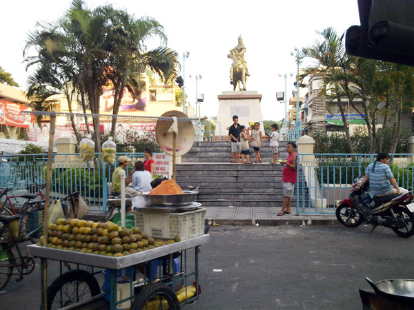 Tượng chiến thắng Ngọc Hồi với hình tượng vua Quang Trung nhỏ xíu được đặt ngay cổng chợ Nguyễn Tri Phương (quận 5), xung quanh là quán xá, hàng rong, rất không phù hợp. (ảnh 5: chụp chiều 9-8)
