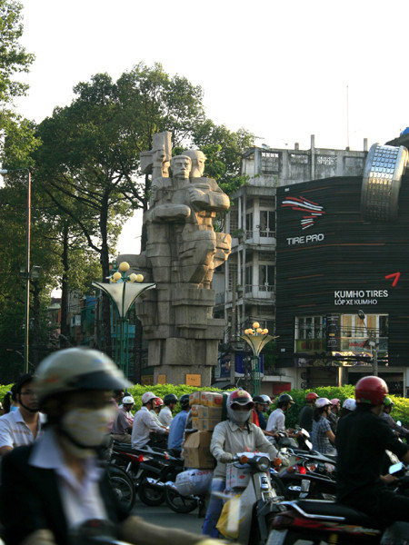 Tượng đài tọa lạc tại một địa danh nổi tiếng (hồ Con Rùa), điểm giao cắt Võ Văn Tần, Phạm Ngọc Thạch, thực chất là một khối bê tông xám xịt, thô ráp. Nhiều người nói không hiểu nó biểu trưng cho cái gì. (ảnh 1:chụp chiều 9-8)