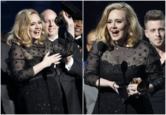 Đặc biệt, nữ ca sĩ Adele đã một lần nữa phô diễn giọng ca khỏe khoắn giàu nội lực, cô nhận được những tràng pháo tay không ngớt của khán giả. Khoảnh khắc Adele lên nhận giải thưởng “Album hay nhất” cho album 21– giải quan trọng nhất Grammy đã khiến cho cả khán phòng vỡ òa cảm xúc.