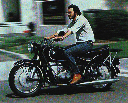 Trên đây là hình ảnh của một Steve Jobs thời thanh niên với tóc dài, râu quai nón, áo sơ mi và quần jean khỏe khoắn. Đây là phong cách thường thấy của giới trẻ Mỹ trong thập niên '70. Chiếc BMW R 60/2 của Steve Jobs được sản xuất vào năm 1966 với khối động cơ 4 kỳ, 2 xylanh.