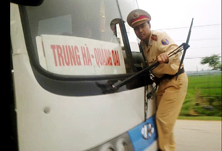 >CSGT đu trước mũi xe như phim hành động
