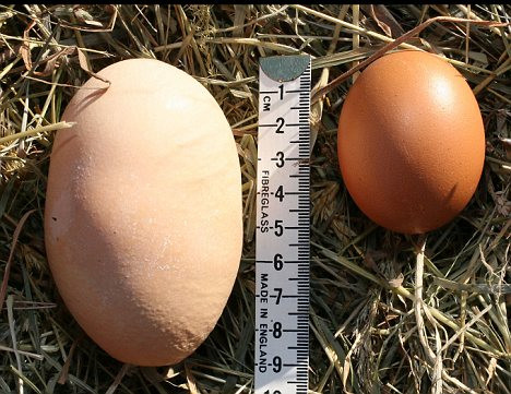 Quả trứng có chiều dài 9cm lớn gấp đôi quả trứng gà bình thường. Ảnh: Dailymail