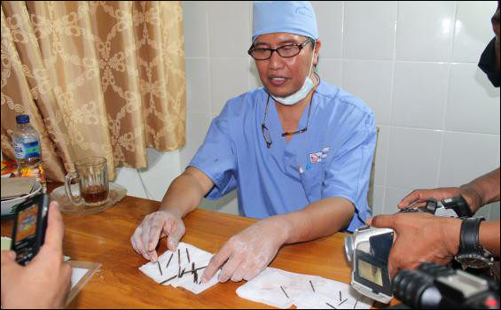 Có 27 vật thể lạ được phát hiện trong chân cô bé. Các bác sĩ đã tiến hành loại bỏ thành công 26 vật thể. Cái cuối cùng ở trong một khu vực quan trọng, có thể gây tổn hại đến dây thần kinh cột sống nên chưa thể lấy ra được.