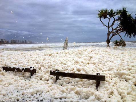Xem clip bãi biển Australia ngập trong bọt trắng như bông:
