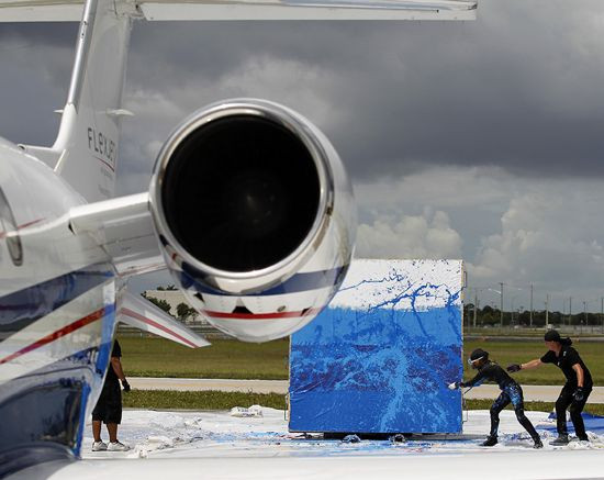Bà Tarinan von Anhalt đã tạo ra các tác phẩm nghệ thuật bằng cách ném những chai sơn trước sức gió của động cơ phản lực máy bay để tạo ra những hình ảnh độc đáo. Có lẽ đây là “cây cọ” đắt tiền nhất được sử dụng để vẽ tranh.
