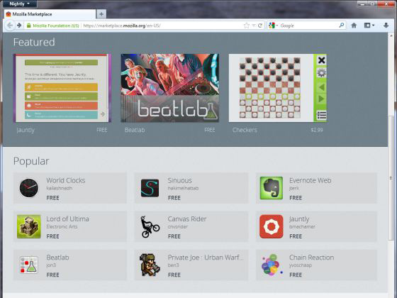 Hiện tại, đội ngũ của Mozilla đang nỗ lực đẩy ứng dụng lên Marketplace, được biết ban đầu sẽ có khoảng 200 ứng dụng.