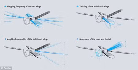 “Thiết bị bay độc đáo này hoạt động được do làm từ các loại vật liệu nhẹ và tích hợp các linh kiện công nghệ cao như cảm biến, mô tơ điện, phần mềm quản lý vòng lặp đóng/mở.” Heinrich Frontzek, giám đốc điều hành hãng Festo cho biết.