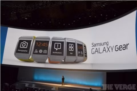 Cuối cùng, sản phẩm đánh dấu sự gia nhập của Samsung vào cuộc đua smartwatch mang tên Galaxy Gear. Thiết bị này chạy trên bộ vi xử lý 800 MHz tùy chỉnh và được hỗ trợ bởi các smartphone và máy tính bảng dòng Galaxy thay vì hoạt động như một thiết bị chạy Android riêng biệt.