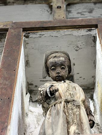 Khách tham quan đến đây được chứng kiến đủ các loại xác ướp già trẻ, trai gái, với đủ các tư thế đứng, ngồi, treo lủng lẳng…