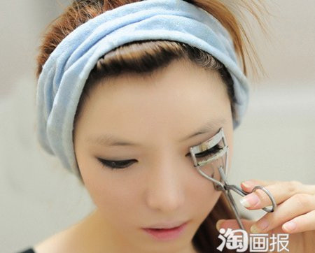 Bước 5: Kẹp mi và gắn mi giả, sau đó chuốt mascara để có hàng mi dày và cong.