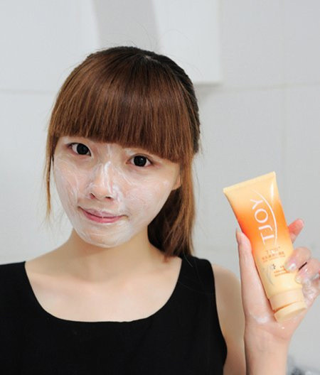 Bước 1: Sử dụng sữa rửa mặt làm sạch với các hạt cát massage nhẹ nhàng để lấy hết bụi bẩn.