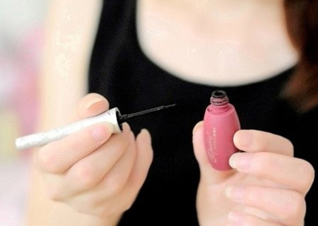 Bước 4: Dùng nước kẻ mắt để tô lại đường kẻ mắt cho thật mướt và chau chuốt.