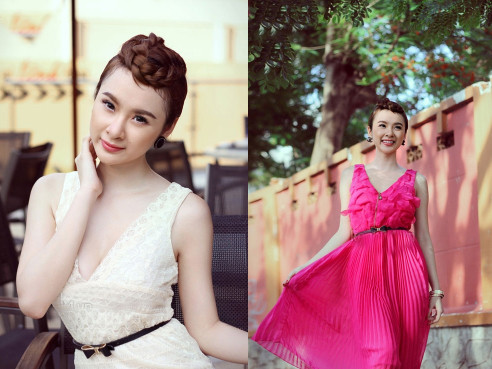 Hiếm khi thấy Angela Phương Trinh với hình ảnh hồn nhiên và trong sáng như thế này. Chiếc thắt lưng nơ xinh xắn tôn lên vẻ đẹp dễ thương cho Phương Trinh