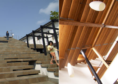 Bên ngoài, vườn nối với mái nhà, bên trong nhà, các phòng thông với ban công và hành lang dọc các phòng. Bọn trẻ có thể chơi đùa ngay trên mái nhà.