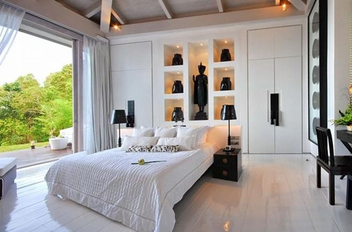 Bốn trong năm phòng ngủ ở đây có cửa trượt mở thẳng ra ban công và bể bơi.