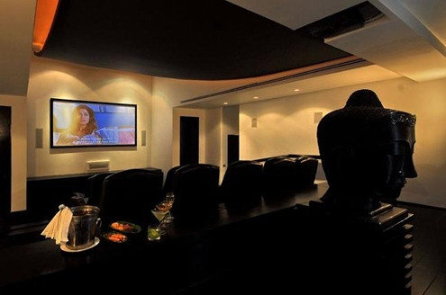 Phòng chiếu phim có 10 chỗ ngồi bọc da.